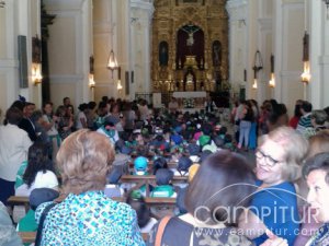 Una vez en la Iglesia, donde se encuentra el Santo, llevan a cabo actos en conmemoración del mismo, para posteriormente retornar a su centro educativo, no sin antes hacer una pequeña parada en el Parque Cervantes, donde recuperar fuerzas con un tentempié.