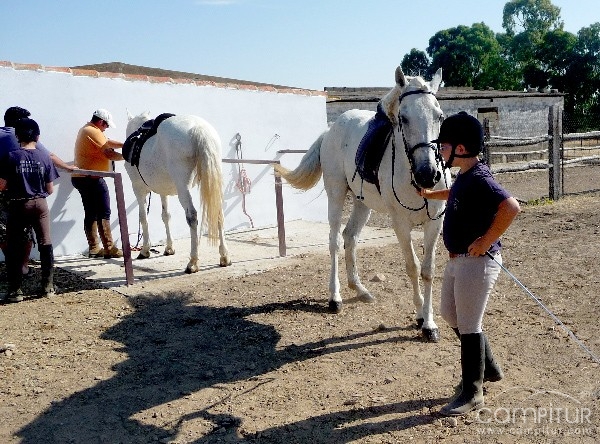 • La Escuela Hípica dispone de una pista exterior, reglamentaria, con zona de sombras donde poder sentarse y contemplar el desarrollo de las clases.