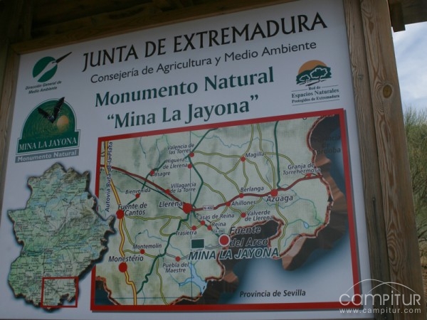 Mina La Jayona está situado al sureste de la provincia de Badajoz, en la comarca de la Campiña Sur, en el término municipal de Fuente del Arco, a 7 km del núcleo urbano. Está ubicado en la Sierra de La Jayona, a unos 700 metros de altitud y ocupa una extensión de 80 hectáreas de un paisaje típico mediterráneo, aunque es destacable el microclima interior de la Mina.