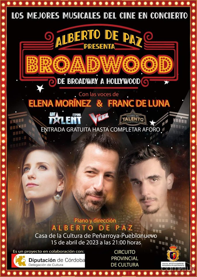 El próximo sábado, 15 de abril, a partir de las 21:00 horas, la Casa de la Cultura del Ayuntamiento de Peñarroya – Pueblonuevo acogerá la puesta en escena del espectáculo "Broadwood, de Broadway a Hollywood"