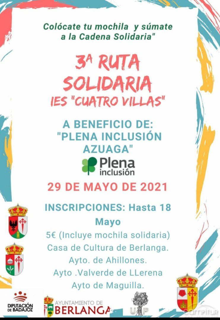 El próximo 29 de mayo, sábado, tendrá lugar la celebración de la 3ª Ruta Solidaria IES “Cuatro Villas” de Berlanga.