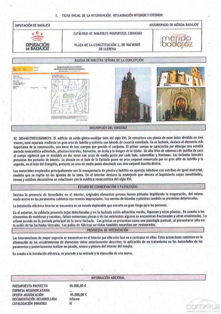 El Ayuntamiento de Valverde de Llerena informa que, la iglesia de Nuestra Señora de la Concepción de la localidad, será restaurada.