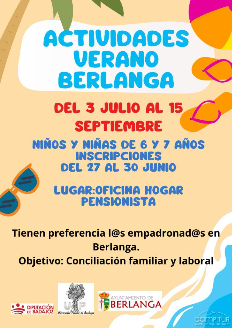Desde el Ayuntamiento de Berlanga informa que, durante toda esta semana, permanecerá abierto el plazo de matriculación para las Actividades de Verano que se desarrollarán en la localidad.