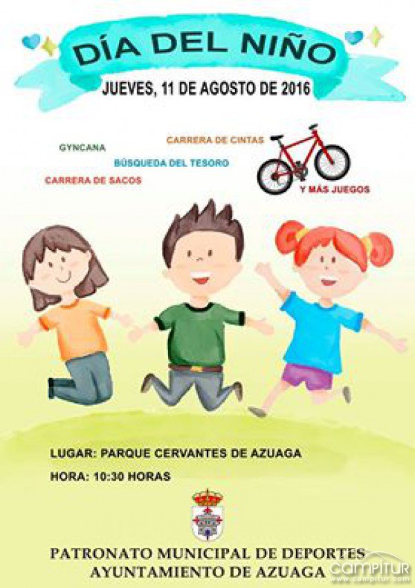 El Patronato Municipal de Deportes del Ayuntamiento de Azuaga organiza la celebración el próximo jueves, 11 de agosto, de Día del Niño.