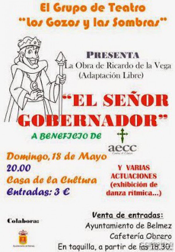 El domingo, 18 de mayo, la Casa de la Cultura de Belmez acoge la puesta en escena de la obra de teatro “El Señor Gobernador”, a cargo del Grupo de Teatro “Los Gozos y las Sombras”.