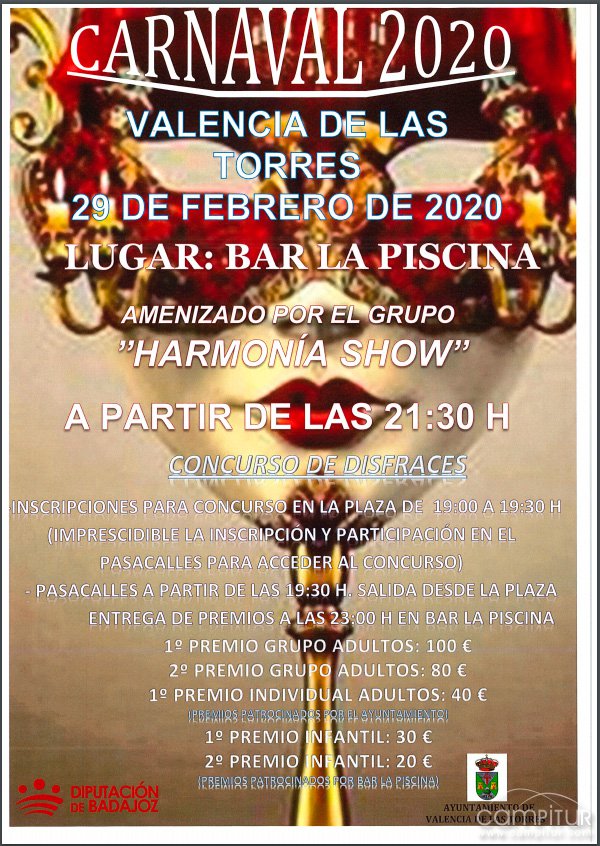 El sábado, 29 de febrero, Valencia de las Torres celebra su Carnaval 2020 con numerosos actos.