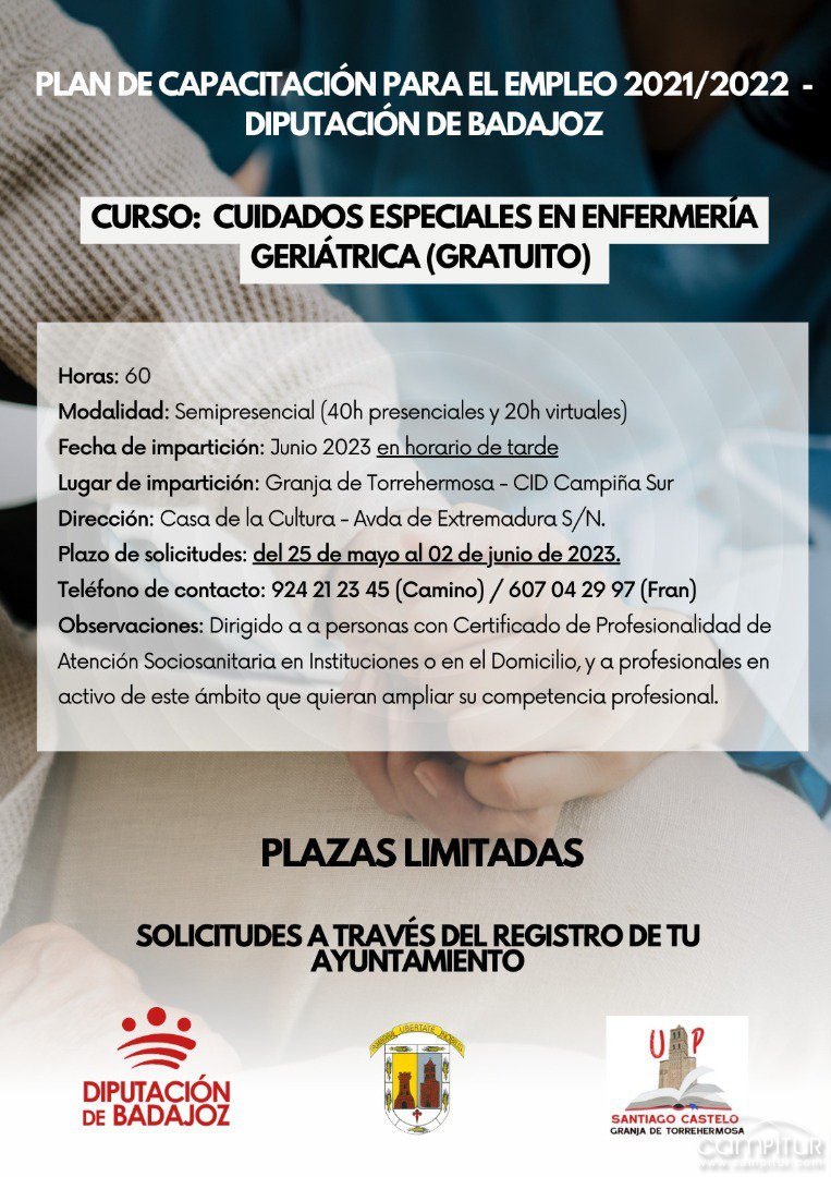 La localidad de Granja de Torrehermosa acogerá la impartición del curso gratuito “Cuidados especiales en enfermería geriátrica”.