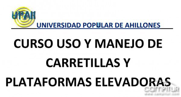 Desde la Universidad Popular de Ahillones informan de la próxima impartición de un Curso de Uso y Manejo de Carretillas y Plataformas Elevadoras en la localidad.