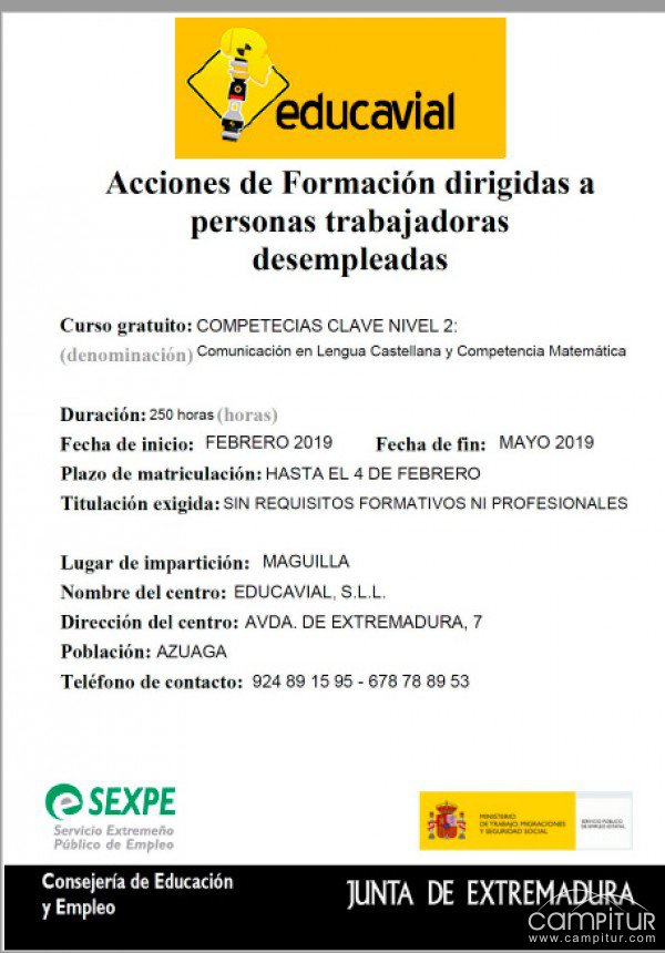 EDUCAVIAL impartirá el próximo mes de febrero un Curso gratuito de Competencias Claves Nivel 2: Comunicación en Lengua Castellana y Competencia Matemática.
