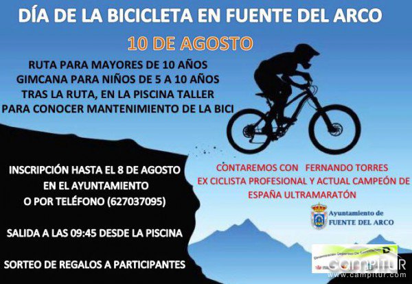 El viernes, 10 de agosto, Fuente del Arco celebra su Día de la Bicicleta, y para ello, desde el Ayuntamiento de la localidad se han programado una serie de actividades de lo más atractiva.