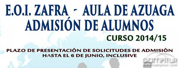 Desde el Ayuntamiento de Azuaga, concretamente desde la Casa de la Cultura de la localidad, informan a todos los posibles interesados de que el plazo para formalizar las inscripciones de admisión para el aula de Azuaga de la Escuela Oficial de Idiomas de Zafra está abierto