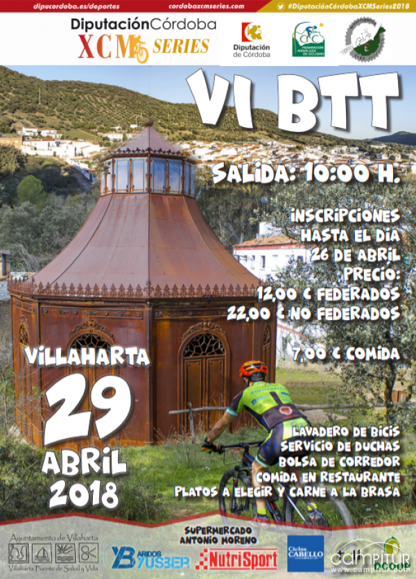 La localidad cordobesa de Villaharta celebra el próximo domingo, 29 de abril, la VI BTT Villaharta, prueba esta, incluida en el Circuito Provincial XCM Serie de Diputación de Córdoba, y organizada por el Club Deportivo Peña Ciclista Ajierropartio de Villaharta.