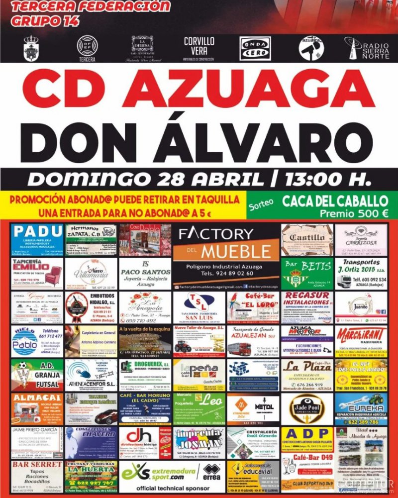 El CD Azuaga aprovechará la apertura de puertas desde el descanso del partido contra el CD Don Álvaro para dar inicio a la festividad. El club extiende su agradecimiento a todos los colaboradores y patrocinadores por hacer posible este día especial, y se complace en invitar a toda la familia rojiblanca a participar de esta tradición que ya es un hito en el calendario del club.