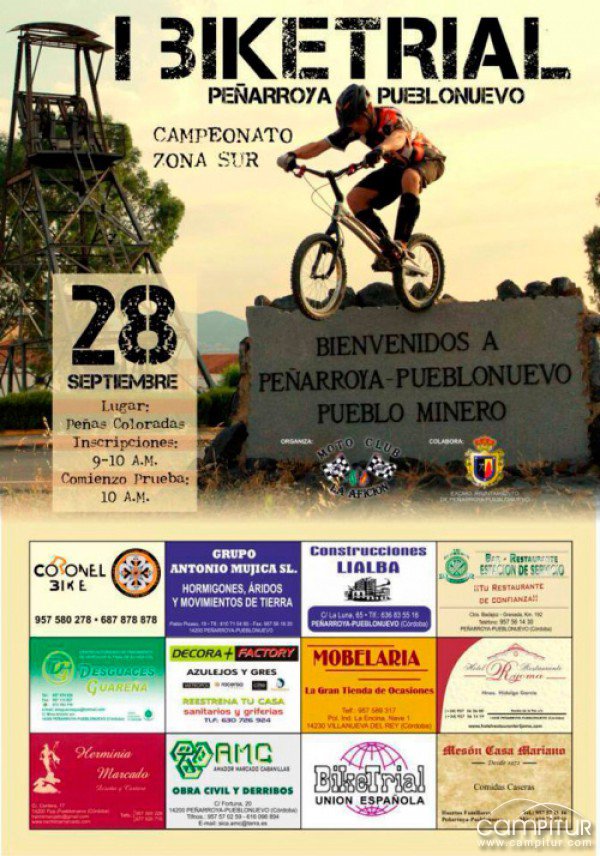 El próximo domingo, 28 de septiembre, la localidad cordobesa de Peñarroya – Pueblonuevo acoge la celebración del I Bike Trial Campeonato Zona Sur.