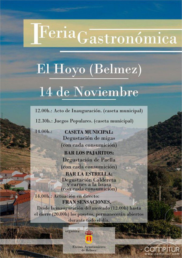 El municipio El Hoyo, de Belmez, celebra este fin de semana su I Feria Gastronómica, en concreto, dicho evento se llevará a cabo en la aldea el próximo sábado, 14 de noviembre.