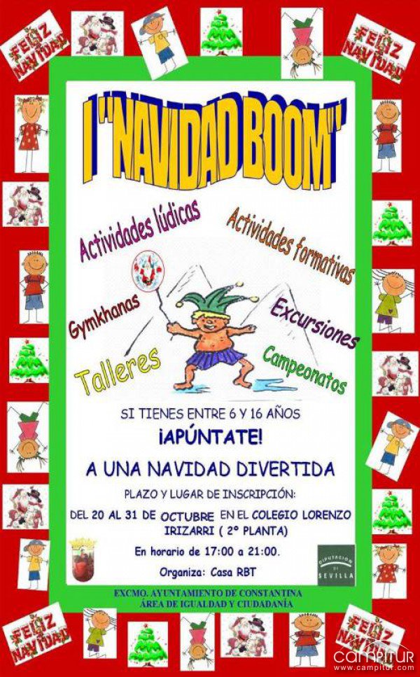 Desde el Ayuntamiento de Constantina, en concreto desde la Casa Ribete del Área de Igualdad y Ciudadanía del consistorio, contando con la colaboración de la Diputación de Sevilla, se pone en marcha durante estos meses la I Navidad Boom.