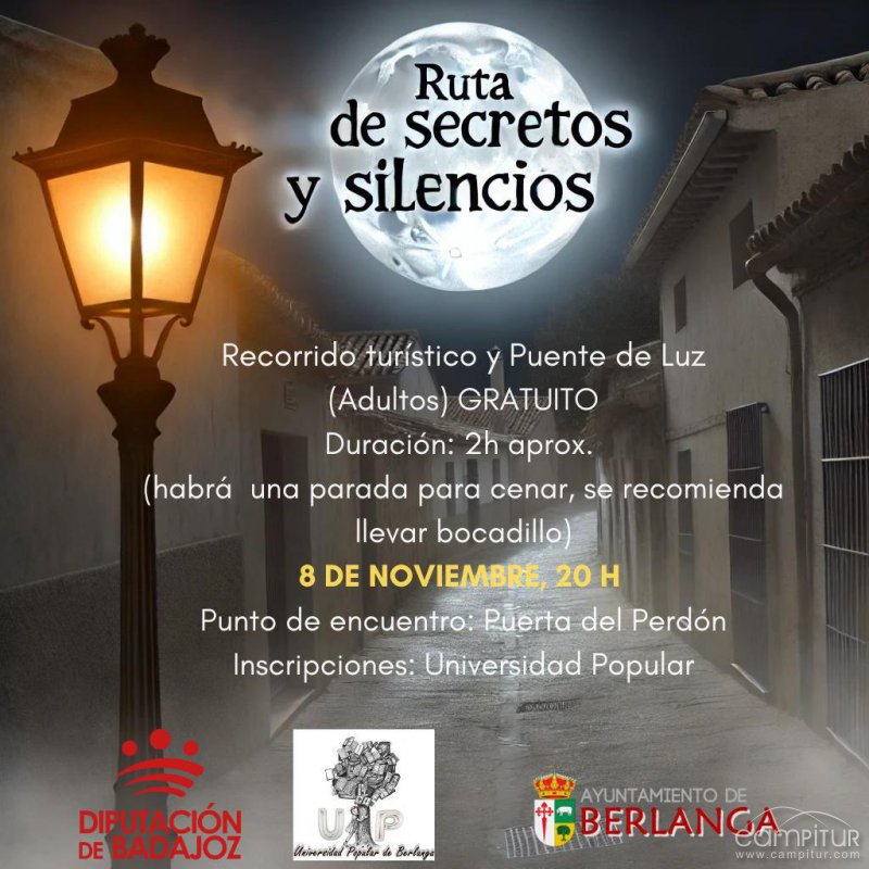 Con motivo del Día de Todos los Santos y aprovechando la creciente popularidad de la celebración de Halloween en nuestro país, Berlanga se prepara para acoger un evento único: la “I Ruta de Secretos y Silencios”. Este evento tendrá lugar el próximo viernes 8 de noviembre a las 20:00 h y promete ser una experiencia que fusiona la historia y el misterio en un recorrido por las calles más emblemáticas del pueblo.