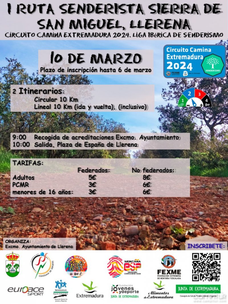La duración estimada es de 3 horas y tras la llegada a la plaza, el Ayuntamiento ofrecerá a los participantes la posibilidad de conocer Llerena y disfrutar de su patrimonio.