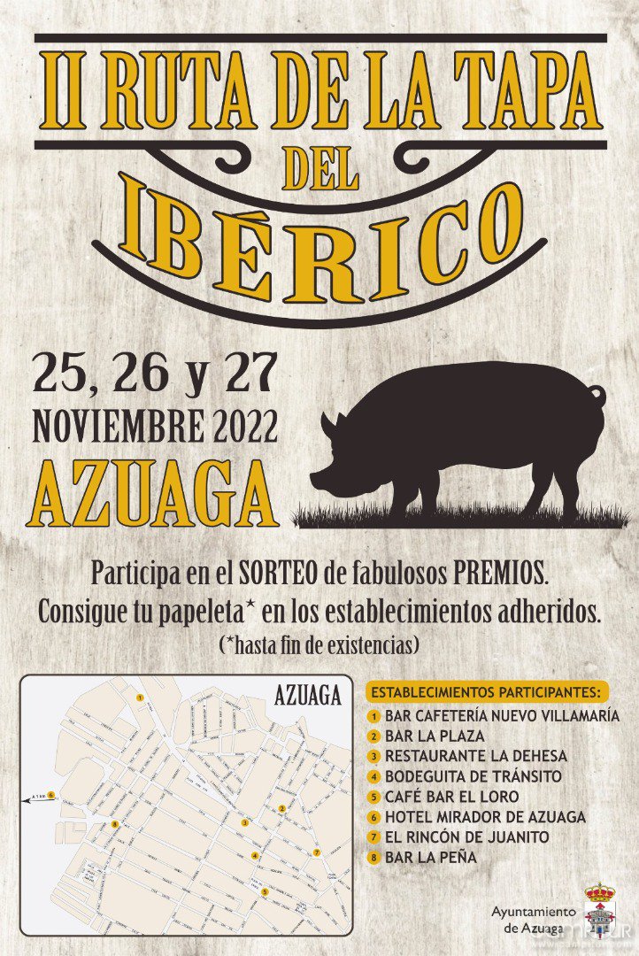 Este fin de semana, concretamente desde hoy viernes, 25 de noviembre, hasta el próximo domingo, 27, Azuaga acoge la celebración de su II Ruta de la Tapa del Ibérico.