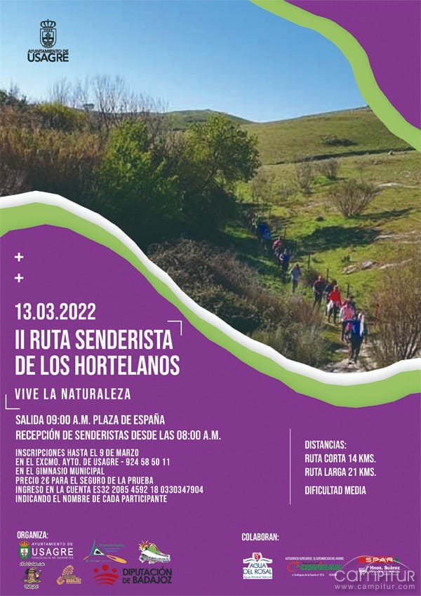 El domingo, 13 de marzo, se llevará a cabo al II Ruta Senderista de los Hortelanos en Usagre