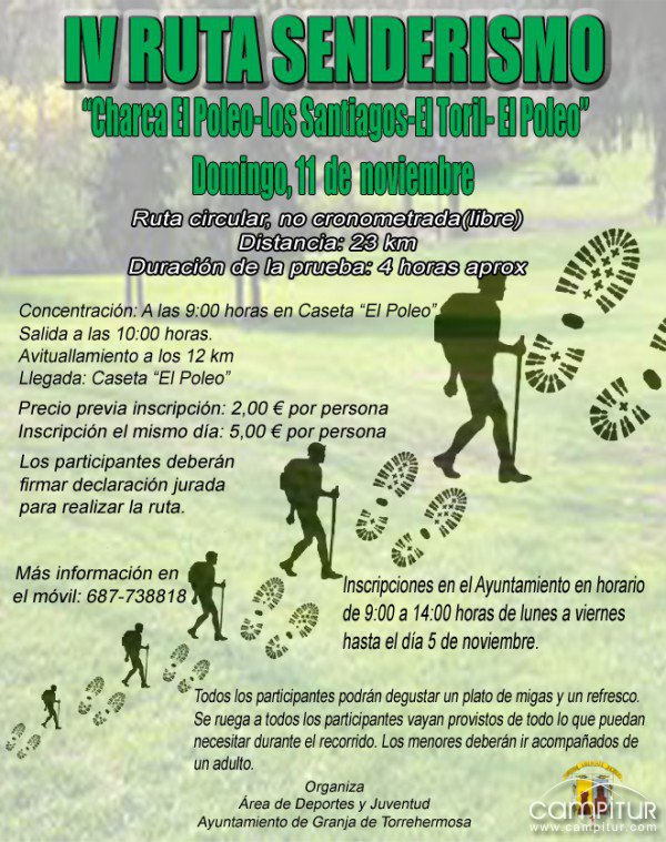 El domingo, 11 de noviembre, Granja de Torrehermosa acoge la celebración de la IV Ruta de Senderismo “Charca El Poelo – Los Santiagos – El Toril – El Poleo”.