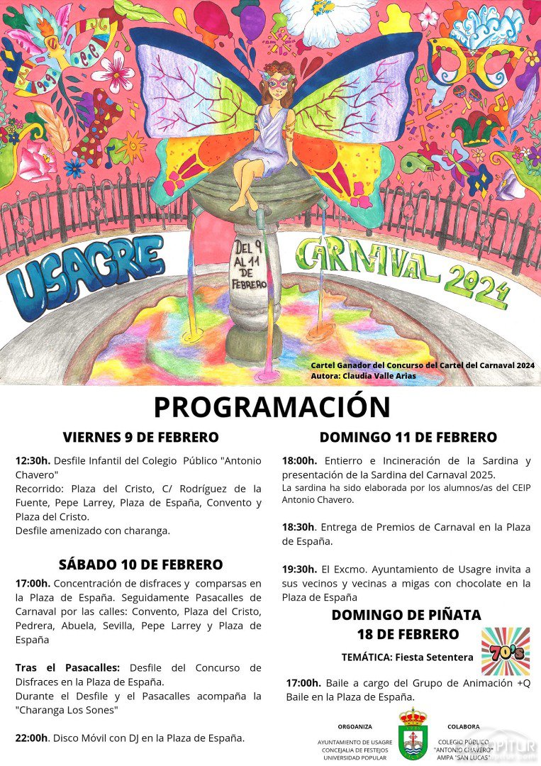 El Ayuntamiento de Usagre, contando con la colaboración del Colegio Público “Antonio Chavero” y la AMPA “San Lucas”, ha programado numerosas actividades con motivo de la celebración del Carnaval 2024.