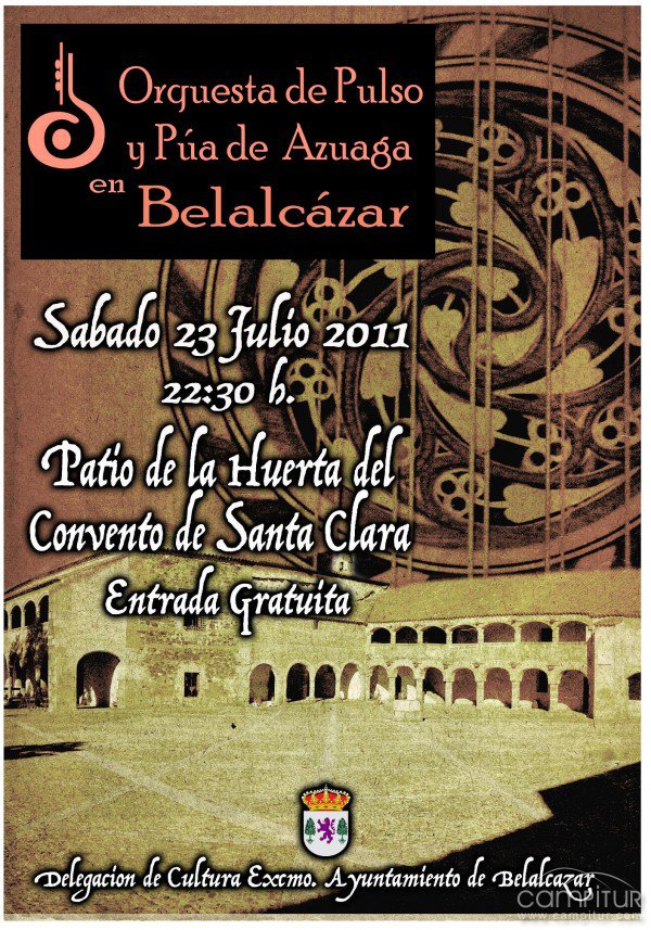 El próximo sábado, día 23 de Julio a las 10:30 PM, la Orquesta de Pulso y Púa de Azuaga, se desplazará hasta la población cordobesa, de Belalcázar, donde dará un concierto de varios estilos musicales, que seguramente será, del gusto de todos los asistentes.