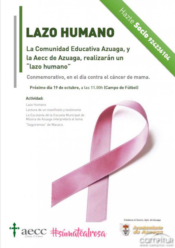 El próximo día 19 de octubre, jueves, la Comunidad Educativa de Azuaga y la AECC de Azuaga, realizarán un “Lazo Humano”, actividad conmemorativa del Día Contra el Cáncer de Mama.