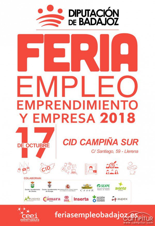 Como decíamos, la Feria del Empleo, Empresa y Emprendimiento se desarrollarán en Llerena, el 17 de octubre, entre las 09:00 y las 13:30 horas, siendo imprescindible