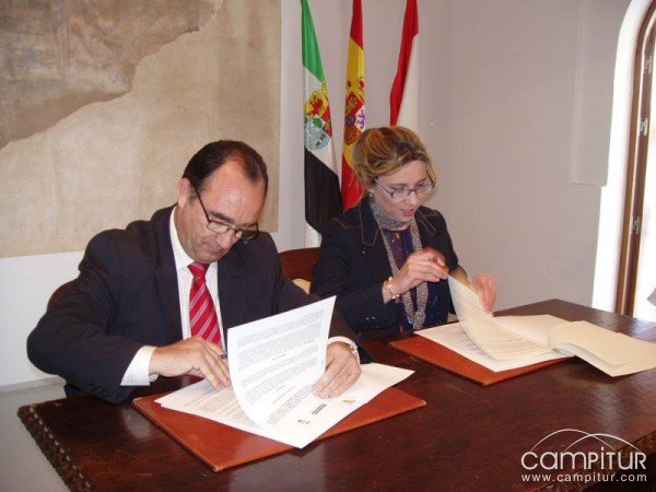 En la mañana del pasado viernes 24 de mayo tuvo lugar la firma del Convenio de Cesión de las obras Premios de Artesanía de Extremadura en el Palacio Episcopal de Llerena por parte de la vicepresidenta de la Junta de Extremadura, Cristina Teniente y el alcalde de Llerena, Valentín Cortés.En dicho acto estuvieron también presentes el director general de Ordenación Industrial y Comercio, Miguel Córdoba así como la delegada provincial de Educación, Concepción Cajaraville y diferentes miembros de la corporación municipal, además de muchos de los artesanos regionales participantes de tan veterano certamen.