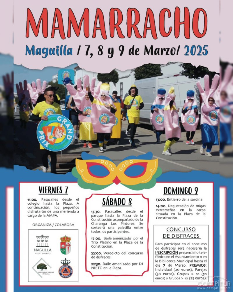 El municipio de Maguilla se vestirá de fiesta los días 7, 8 y 9 de marzo con la celebración de "Mamarracho 2025", un evento que llenará las calles de música, color y mucha diversión. Durante tres días, vecinos y visitantes podrán disfrutar de pasacalles, bailes, degustaciones gastronómicas y el tradicional concurso de disfraces.