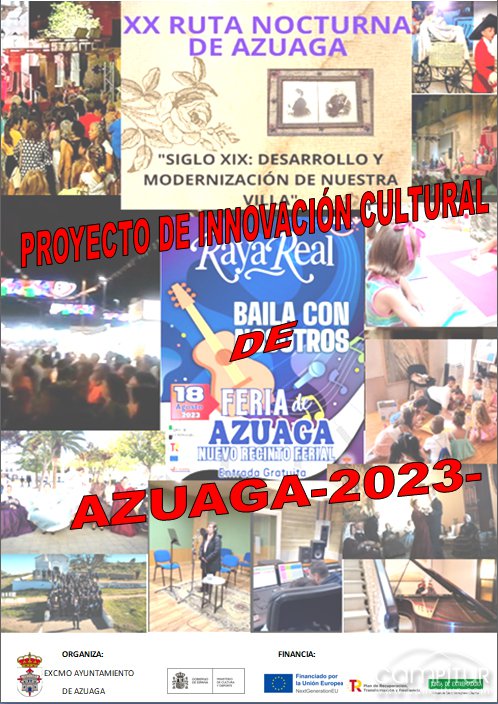 El proyecto “Innovación Cultural de Azuaga” desarrollado durante el año 2023 por el Ayuntamiento de Azuaga y financiado por la Unión Europea-Next Generation EU ha finalizado con un gran éxito de participación de la población y de visitantes. El proyecto fue presentado a la convocatoria destinada a la concesión de ayudas públicas para ampliar y diversificar la oferta cultural en áreas no urbanas de los Fondos de NextGenerationEU y el Mecanismo de Recuperación y Resiliencia del Reglamente UE 2021/241 al amparo del Decreto 149/2022 de 14 de diciembre. Las actividades desarrolladas en este proyecto han sido las siguientes: