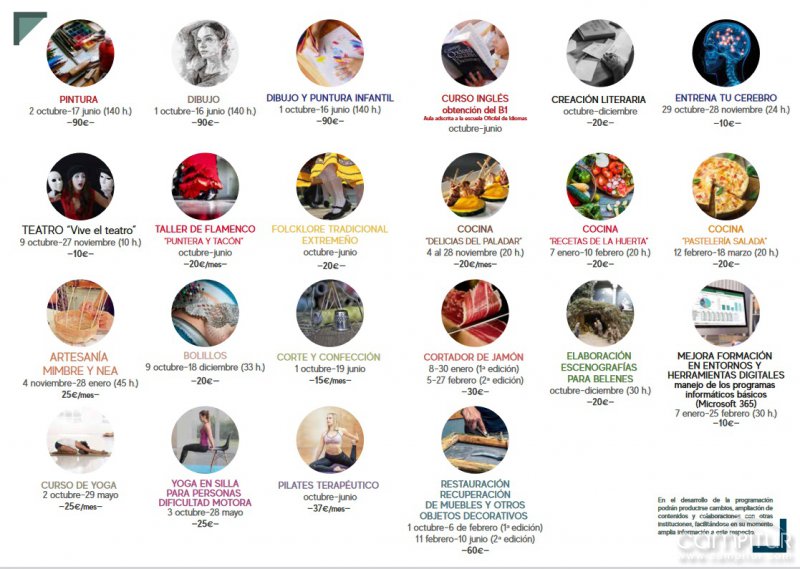 La Universidad Popular de Llerena ha lanzado su programa de Cursos y Talleres para el período 2023-2024, que abarca una amplia gama de disciplinas, desde artes plásticas hasta formación profesional y actividades para el bienestar personal. La oferta está diseñada para cubrir los intereses de personas de todas las edades, con opciones presenciales y horarios accesibles.