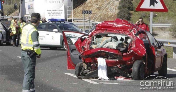 A media tarde de ayer se producía un grave accidente en el punto kilométrico 555 de la autovía A-66, en el término municipal de Cáceres, en el cual se vieron implicados un turismo y un camión. En el turismo viajaban un padre y dos de sus hijas de Azuaga. M.A., de 68 años, viudo y padre de otros dos hijos, era quien conducía. Él murió, al igual que su hija mayor M. J. A., de 45 años, que ocupaba uno de los asientos traseros. Su hija I. A., de 41 años, resultó herida de gravedad.