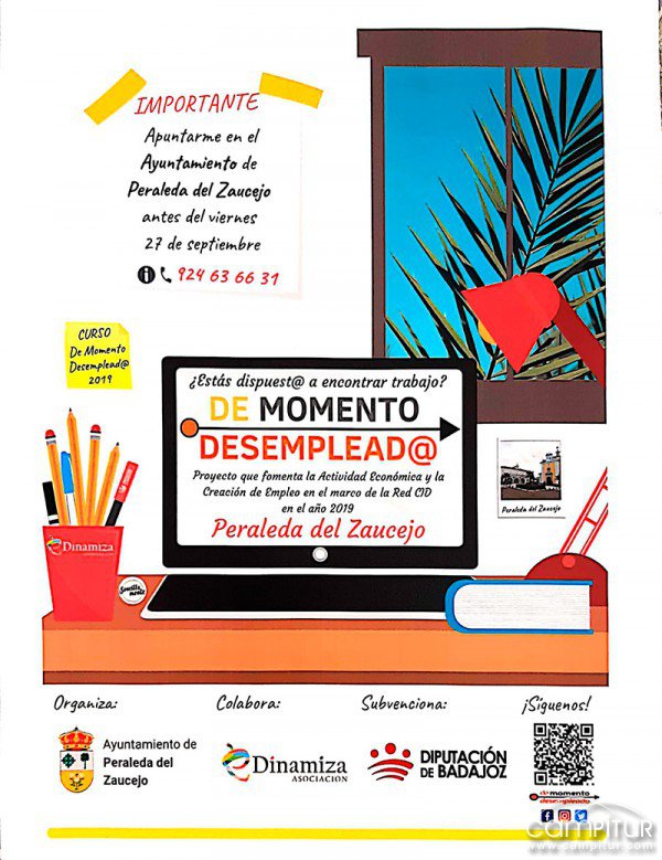 El Ayuntamiento de Peraleda del Zaucejo ha organizado la impartición de un curso denominado “De momento desemplead@ 2019”.