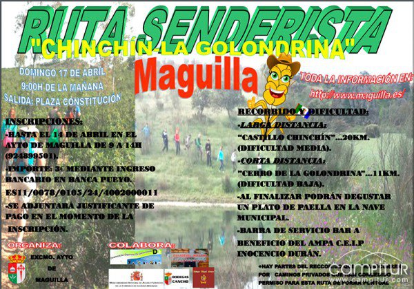 El domingo, 17 de abril, se llevará a cabo la Ruta Senderista “Chinchín – La Golondrina”, en Maguilla.