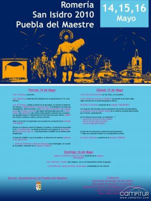 La localidad pacense de Puebla del Maestre celebra, como la gran mayoría de las localidades que conforman la Campiña Sur, sus fiestas en honor al patrón de los agricultores: San Isidro.