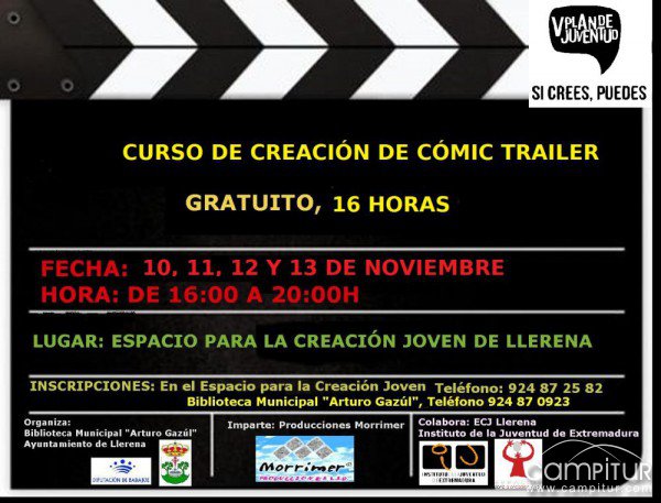 Dentro de la programación prevista para la celebración del IV Encuentros de Cómic de Llerena, se va a llevar a cabo en la Biblioteca Municipal “Arturo Gazul” de dicha localidad, la impartición de un Taller Audiovisual, dedicado éste a la edición de Cómictrailers.