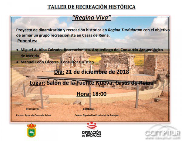 El viernes, 21 de diciembre, a las 18:00 horas, el Salón de la Fuente Nueva de Casas de Reina acogerá la celebración del Taller de Recreación Histórica “Regina Viva”.