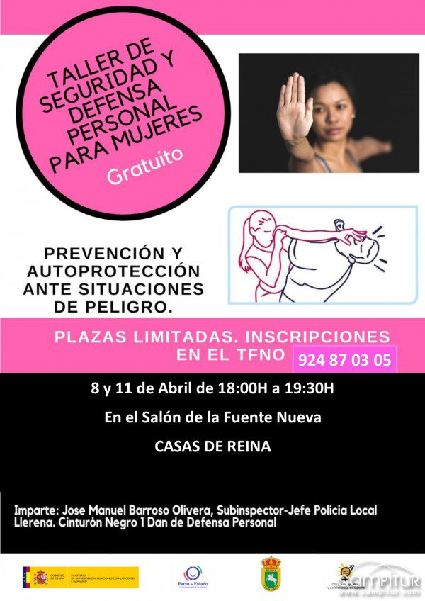 El lunes 8 y jueves 11 de abril, la localidad pacense de Casas de Reina acoge la impartición de un Taller de Seguridad y Defensa personal para mujeres.
