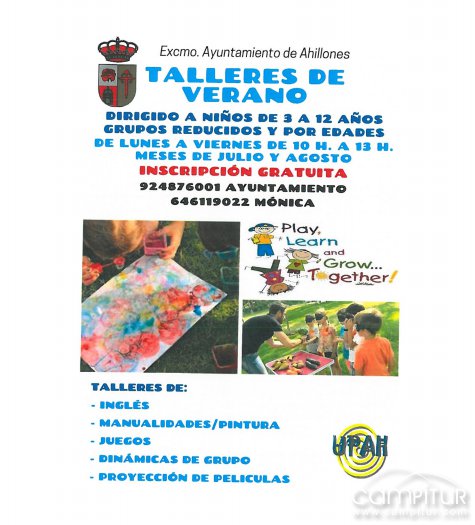 El Ayuntamiento de Ahillones pone en marcha para este verano la impartición de una serie de talleres dirigidos a niños y niñas de 3 a 12 años.