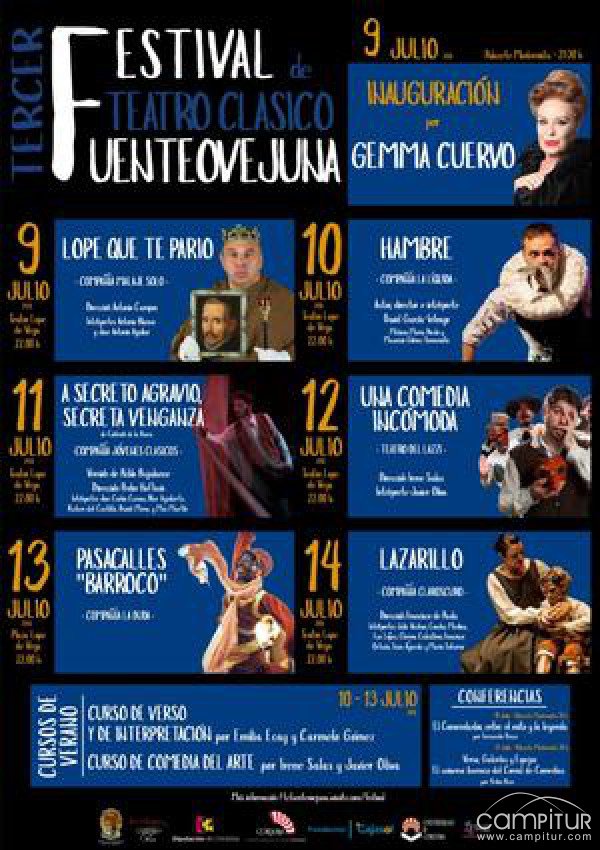 Fuente Obejuna acoge el próximo mes de julio, la celebración de su tercera edición del Festival de Teatro Clásico, y para ello, además de numerosas representaciones teatrales, se llevarán a cabo otras actividades tales como conferencias o talleres.