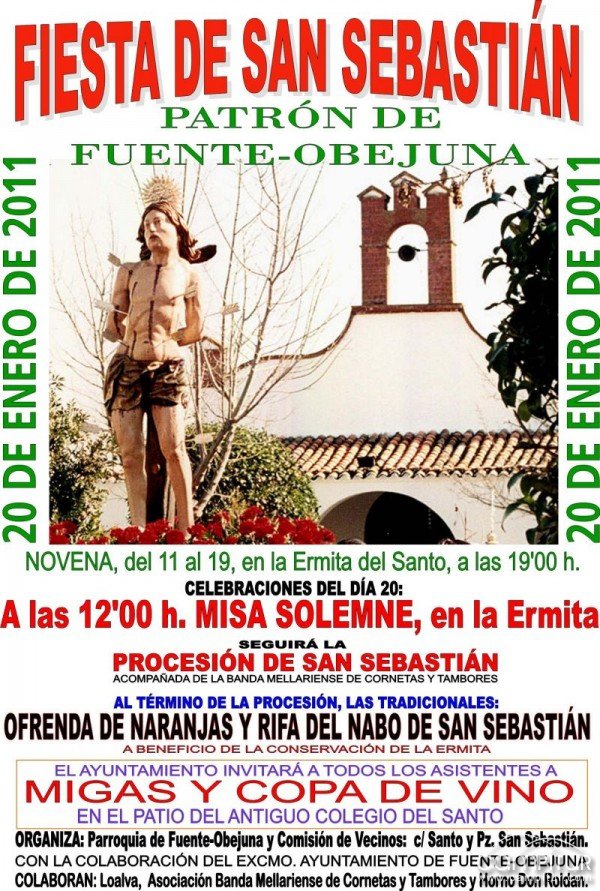 El próximo jueves, 20 de enero, la localidad cordobesa de Fuente Obejuna celebra el día de su patrón, esto es, la Fiesta de San Sebastián. Para ello se llevarán a cabo una serie de actividades lúdicas que os detallamos a continuación.