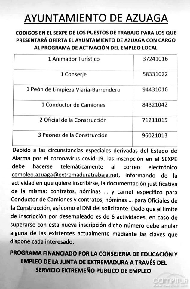 El Ayuntamiento de Azuaga precisa cubrir un total de 9 plazas de trabajo, enmarcadas éstas dentro del Programa de Activación del Empleo Local.