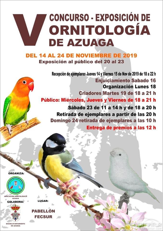 Se trata de una actividad organizada por la Asociación Ornitológica de Azuaga, y que cuenta con la colaboración del Ayuntamiento de Azuaga.