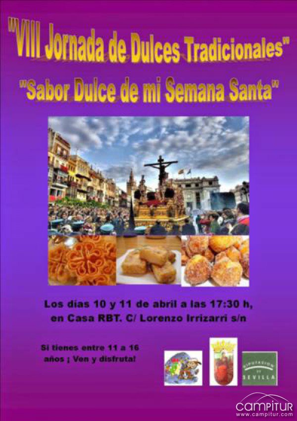 La Casa RBT del Proyecto Ribete del Área de Igualdad y Ciudadanía de Ayuntamiento de Constantina organiza, los próximos jueves 10 y viernes 11 de abril la VIII Jornadas de Dulces Tradicionales “Sabor Dulce de mi Semana Santa”.