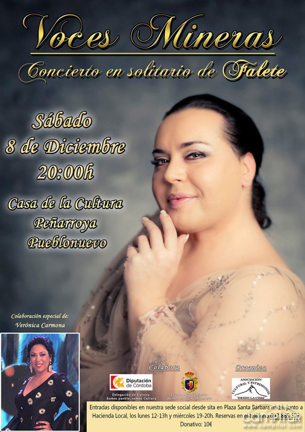 Verónica Carmona es la artista que complementa el cartel de este evento el próximo sábado 8 de Diciembre en Peñarroya Pueblonuevo. Una prodigiosa voz que viene desde el Programa TV Original y Copla hasta nuestra Casa de la Cultura.