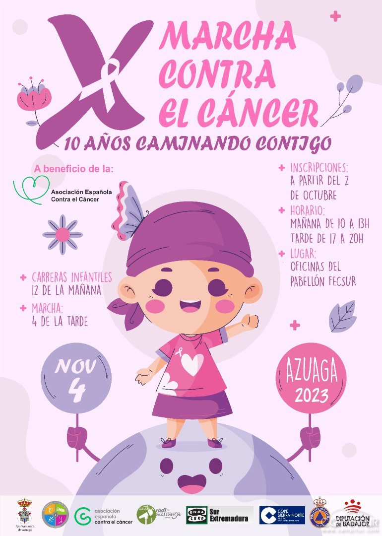 Ya tenemos la fecha para la Marcha Contra el Cáncer en Azuaga, la cual tendrá lugar el sábado, 4 de noviembre.