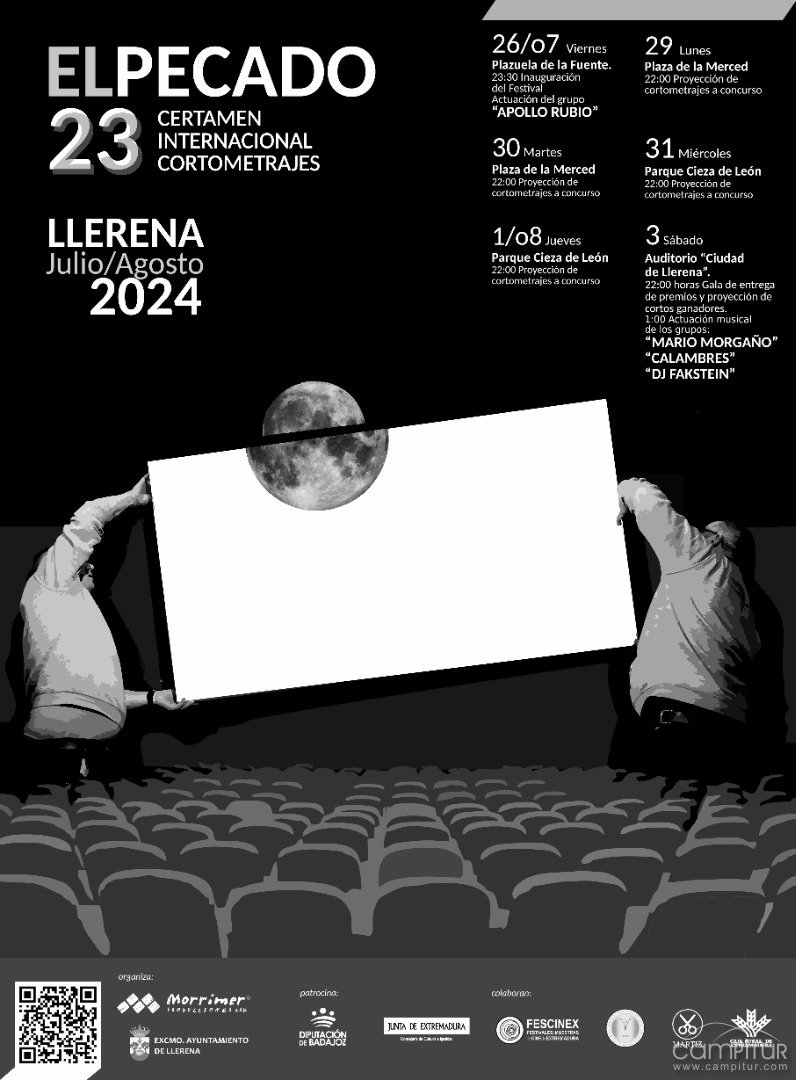 El Excmo. Ayuntamiento de Llerena y la Asociación Cultural Mórrimer, organizadores del XXIII Certamen Internacional de Cortometrajes “El Pecado 2024” informan que se abre el plazo de presentación de cortometrajes para poder participar en el mencionado certamen.