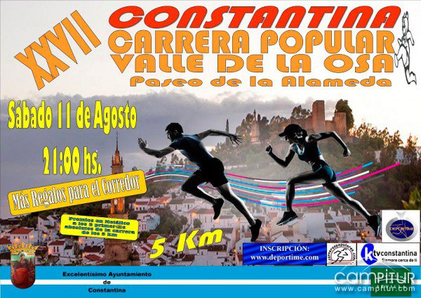 Desde la Delegación Municipal del Ayuntamiento de Constantina se hallan trabajando en los preparativos para uno de los eventos deportivos más importantes de la localidad, la Carrera Popular Valle de la Osa, que este año alcanza nada más y nada menos que su XXVII edición, y se disputará el sábado, 11 de agosto a las 21:00 horas en el Paseo de la Alameda.